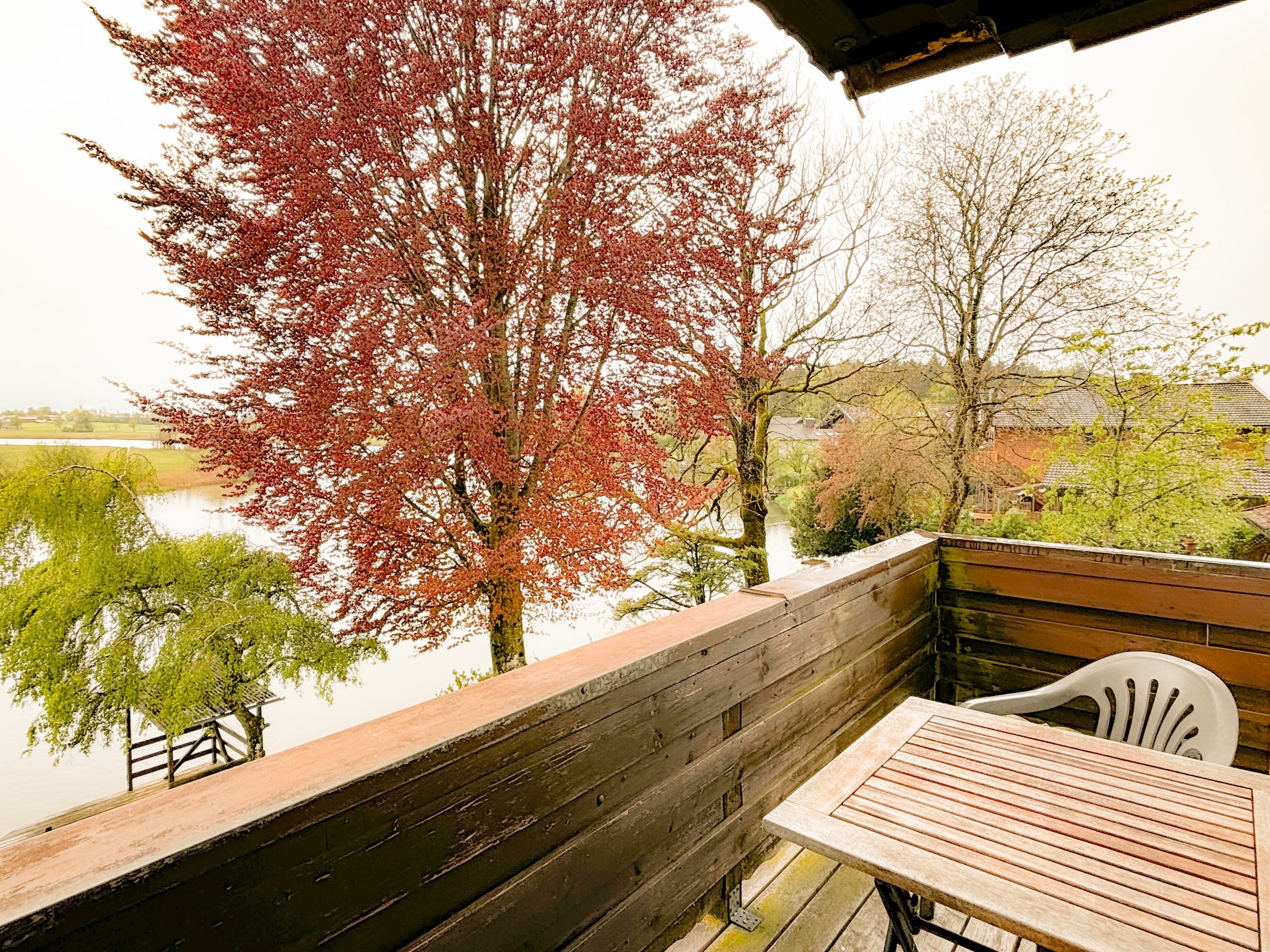 - Eckbalkon nach Süden und Westen mit schönem Blick zu den Bergen, auf die Alz und auf die Liegewiese
