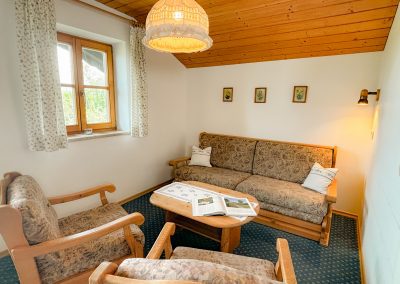 - Wohnraum mit Couchgarnitur und zwei Couchsesseln sowie Kabel-TV